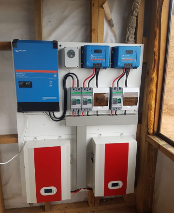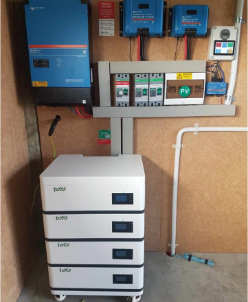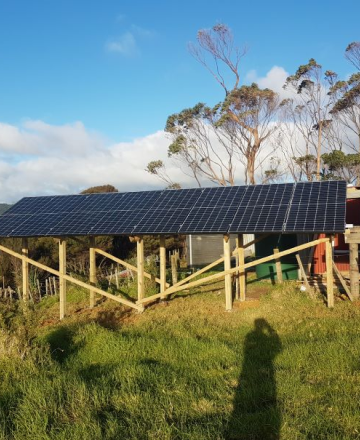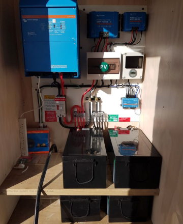 Installed near Hehe, this system is running a small – medium sized home. The building orientation was not facing North, so they opted for a wooden ground frame to increase the amount of sun on the panels. It has a 5kw inverter, 15kwh of stackable lithium batteries and 8x 450w Panels. It took 3 days to install…